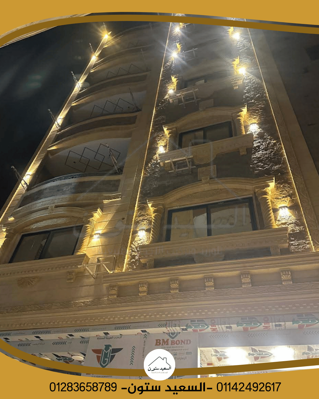 - كذلك يتميز بسطح خشن نسبيًا، يساعد في إظهار التفاصيل الدقيقة للديكور ويمنح الواجهة بُعدًا جماليًا مختلفًا. كما يمتلك الحجر قدرة طبيعية على مقاومة الرطوبة، مما يمنع ظهور البقع أو العفن على الواجهة.