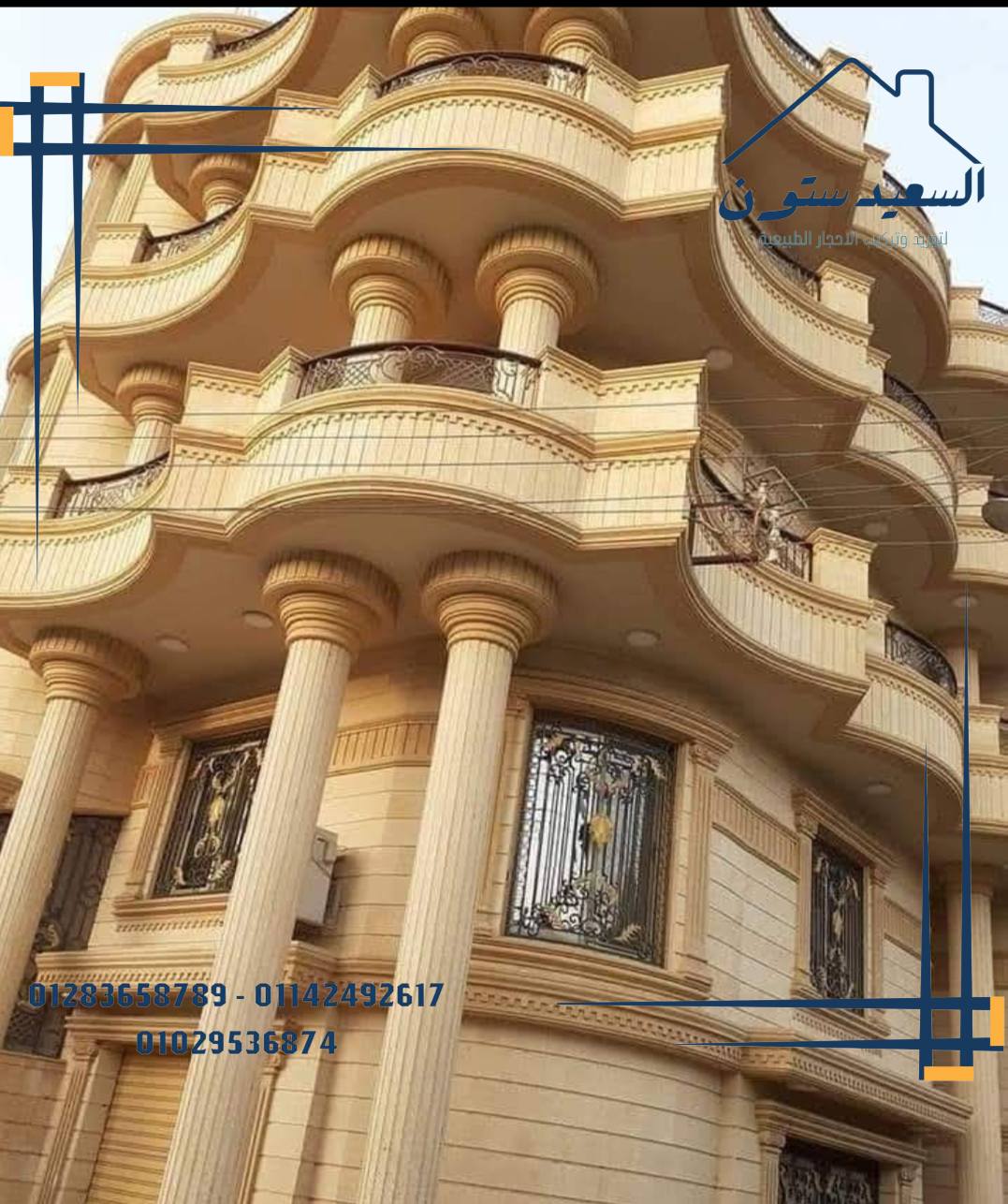 لونه البيج الغامق أو الأصفر الجملي يعطي فخامة طبيعية للواجهات.