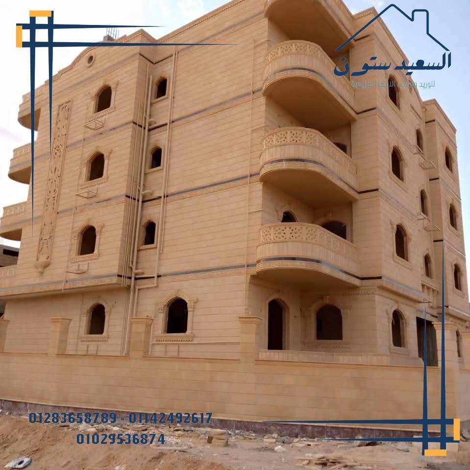 | الحجر الكريمي | – يتميز بلونه الكريمي الفاتح الذي يضفي لمسة كلاسيكية أنيقة. – يوفر عزلًا حراريًا جيدًا للواجهات. – سهل التشكيل والنحت، مما يجعله مناسبًا للتصميمات الزخرفية. |